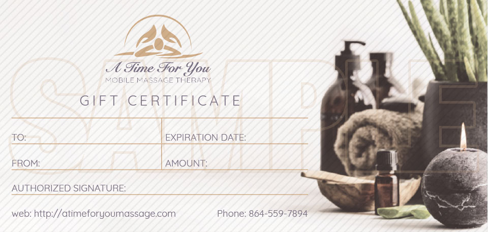 Learn MoreSearching for the perfect gift? Look no further! A Time For You Massage Gift Certificates are the ultimate present that lets your loved ones select exactly what they want.